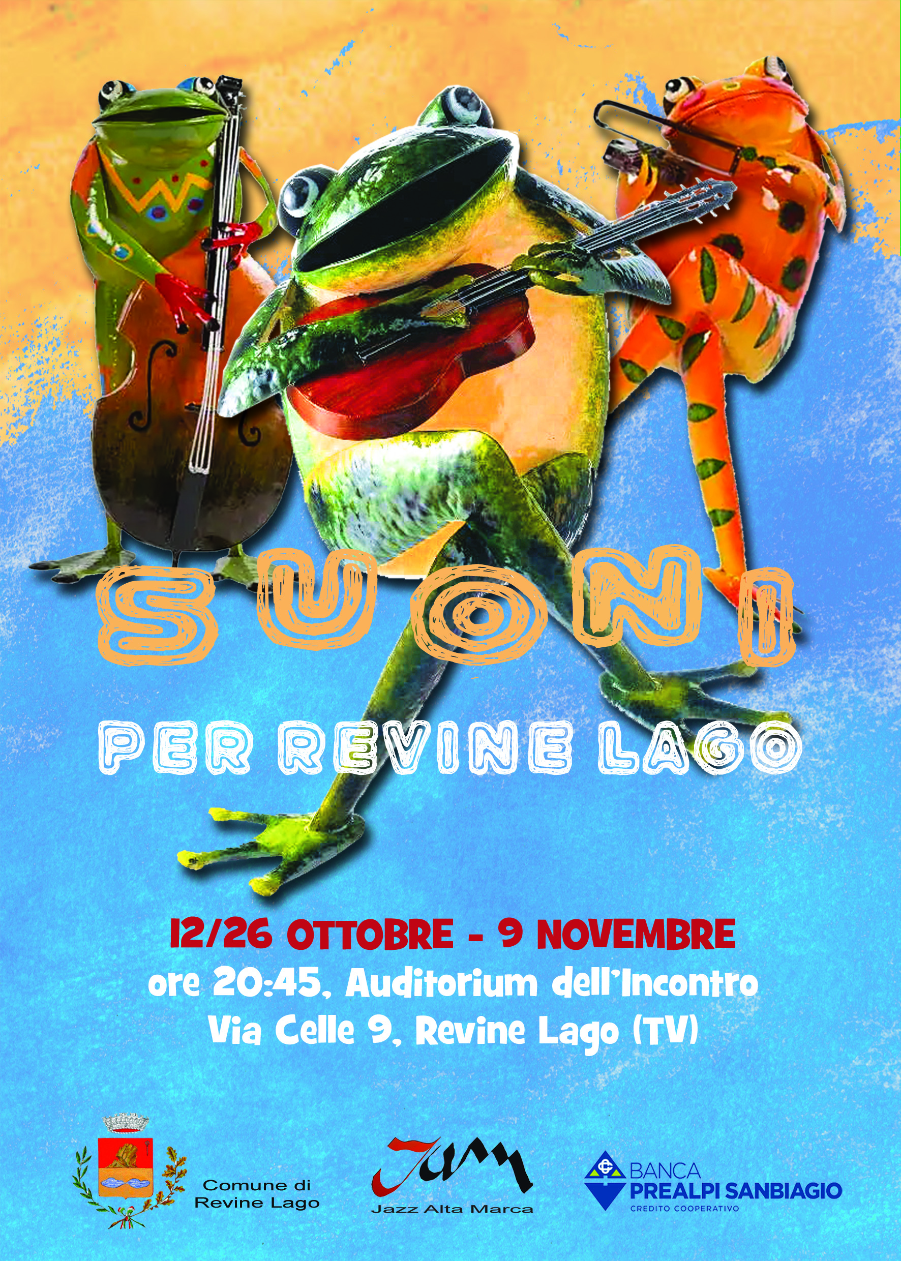 Tre appuntamenti, i sabato 12 e 26 ottobre e il 9 novembre, che propongono Musica autentica, genuina, non filtrata da sterili metodologie tecnologiche, ma frutto di anni di impegno e ricerca, di dedizione e creatività, al fine di risvegliare, ad ogni concerto le emozioni più armoniose che, da quando esiste il mondo, incoraggiano e confortano ogni essere umano nel cammino della vita. (Enrica Bacchia, Direttrice Artistica di Suoni per Revine Lago)